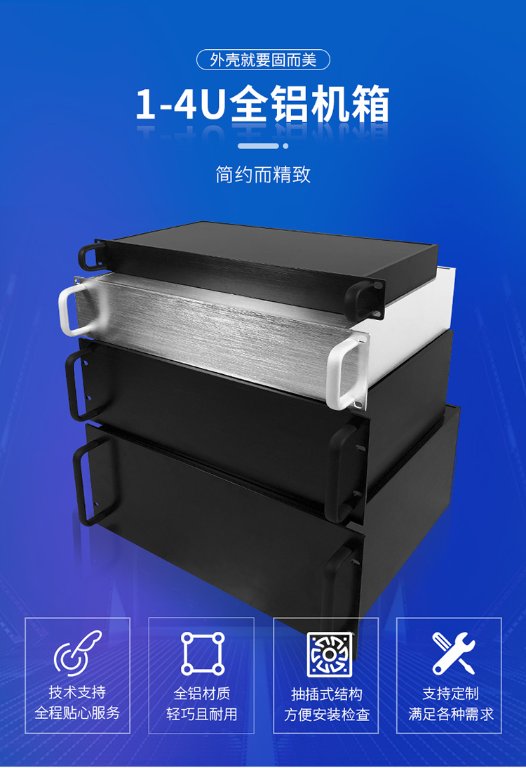 選擇一款適合自己的工控機(jī)箱至關(guān)重要,固而美制作的這款全鋁的工控機(jī)箱,性價(jià)比極高,不僅涵蓋了 1U,2U ,3U ,4U 各類的標(biāo)準(zhǔn)尺寸,還提供了各種常規(guī)的深度來供大家選擇,例如1U300深,2U300深,2U350深,4U350深,等比較常規(guī)的尺寸。就算是沒有找到合適自己的機(jī)箱也沒關(guān)系,可以根據(jù)需求單獨(dú)定制。在U型機(jī)箱中幾U指的是機(jī)箱的寬度,也可以理解為是機(jī)箱的厚度,1U=4.45CM,以次類推就可以計(jì)算出對應(yīng)幾U的尺寸。